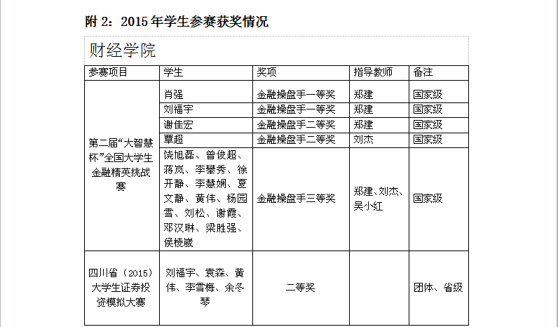 2015年,在《国家中长期教育改革发展纲要》和学校总体目标指引下,我校深入开展教育教学改革,创新人才培养模式,大力提升人才培养质量,促进学校内涵发展,取得了显著成果,全年师生共有100余人次获奖。