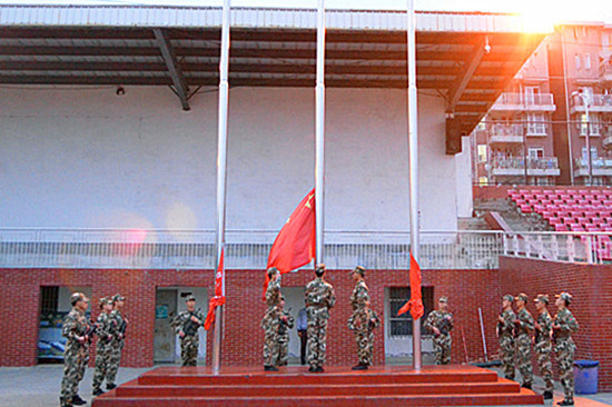 早上7点20分,升旗仪式正式开始。鲜艳的五星红旗在国旗手的护卫下,伴着雄壮的《义勇军进行曲》缓缓升起,全场师生行注目礼,现场气氛庄严肃穆。