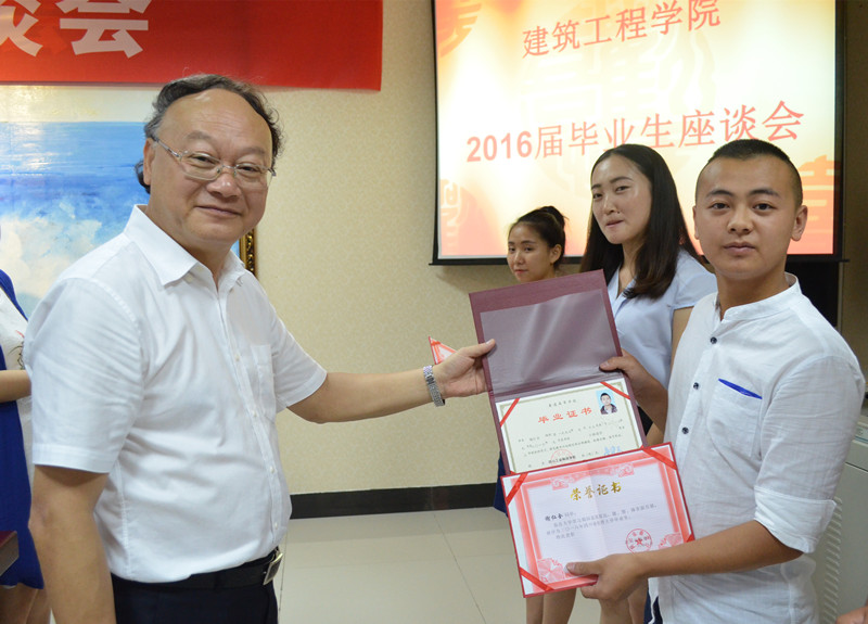 唐健禾教授为荣获“2016年四川省优秀大学毕业生”的建筑工程学院学子颁发荣誉证书