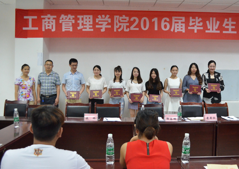 黄斯欣为工商管理学院毕业生代表颁发毕业证书