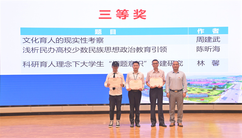 会上,倪霞宣读了优秀论文获奖名单。全体与会领导向受表彰的老师表示祝贺,希望受表彰的老师要结合自身研究特长,继续产出高质量成果。