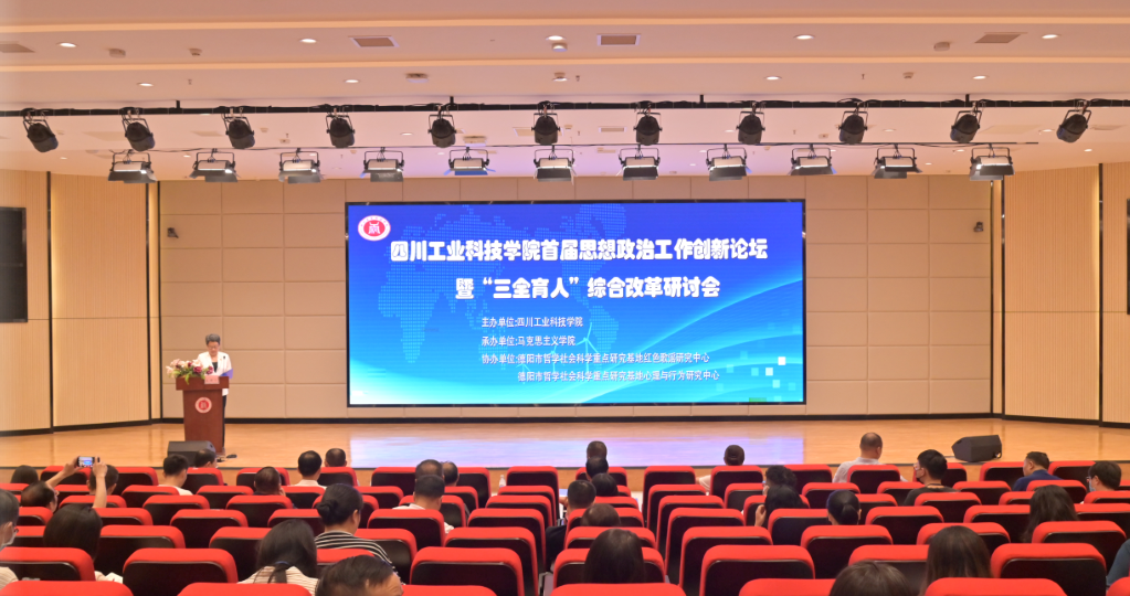 紧接着,蔡林、崔书磊、冯军成等10位论坛代表依次上台发言。蔡林以《黄继光精神的内涵要义、时代意蕴和实践路径》为题作报告,简述了黄继光的时代意蕴,他认为黄继光的精神就是不立功不下战场的实干精神、惊天一跃堵枪眼的革命英雄主义精神、决不给我们党丢脸的革命忠诚精神。崔书磊在《“三全育人”视域下的“一基两翼三新”网络育人模式探索与实践——以四川工业科技学院易班建设为例》中,以学校易班建设过程中的具体事例和典型经验为例,阐释了网络育人的新思路。冯军成在《红色歌谣的搜集整理及其在思想政治工作中的应用》中认为,红色歌谣的搜集整理是国家安全战略的发展要求、高校基本职能的现实需要、个人成长成才的必然选择。冯军成结合运用红色歌谣的实践,介绍了红色歌谣基本情况和未来趋势。周建武以《文化育人的现实性考察》为题作报告,阐述了马克思主义为什么行的重大意义,指出要以马克思主义为指导,传承好中国传统文化,勇担时代责任。陈昕海以《浅析民办高校少数民族学生思想政治教育引领——以四川工业科技学院为例》为题,凭借基层辅导员工作经验,通过数据分析、心理画像等,提出符合学校实际的少数民族学生的思政管理模式。林馨以《科研育人理念下大学生“问题意识”构建研究》为题作报告,他以学校学生为调研对象,以独特视角,介绍了科研育人理念下大学生“问题意识”构建的现实性、紧迫性和可行性问题。何林贵以《高校思政课教师职业认同现状及提升策略研究》为题,对思政课教师的职业认同进行了阐述并对就提升认同感的策略进行了研究。刘家麟在《工程材料一流课程建设中的课程思政教学探索》中,以一名专业课教师的角度,对一流课程建设中的课程思政元素阐释了自己的看法和思考。刘翠以《学术诚信融入大学生思想政治教育的途径探索》为题,大力呼吁学术诚信教育融入大学生思政教育,营造一个风清气正的学术氛围和空间。邓靓在《红色歌谣在高校思想政治理论课中应用》中,以独特的视角对红色歌谣进思政课进行了理论阐释。
