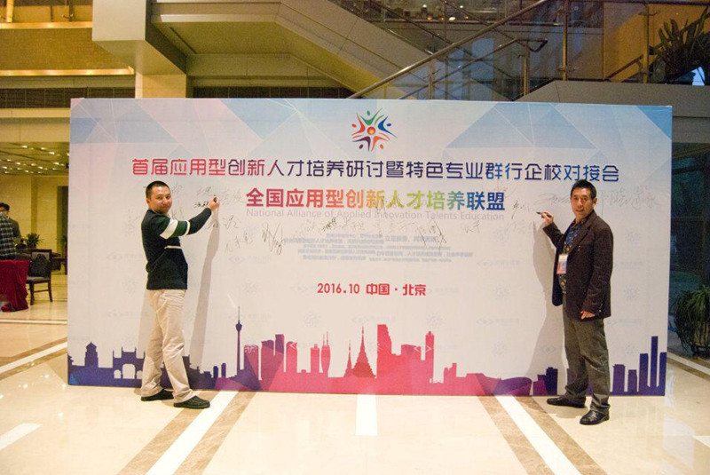 10月22日至23日,全国首届应用型创新人才培养暨特色专业群行企校对接会在国家教育行政学院举行。来自全国25所具有应用型人才培养特色的高等院校和10余家国家一级企业协会共129名代表参会。学校应邀参加会议。