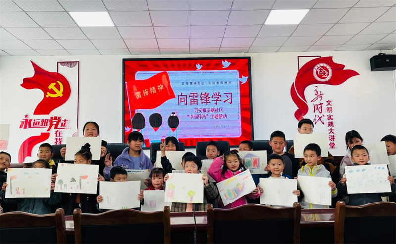 3月5日上午,在罗江区万安镇响石村幸福驿站,学校志愿者通过三个活动,在小朋友心里播种下学习雷锋精神的种子。首先是“传统文化小课堂”,志愿者以PPT讲解的形式,从“雷锋精神”切入,为小朋友分享了雷锋的生平事迹,鼓励他们要学习和发扬雷锋精神。接着是“雷锋精神知识问答”和“画出心中的雷锋”两个环节,在活动中让小朋友们通过学习、测验和亲身感悟的方式深刻了解雷锋,学习雷锋热爱党、热爱祖国、热爱社会主义的崇高理想和服务人民、助人为乐的奉献精神,让雷锋精神的种子在小朋友心中生根开花。