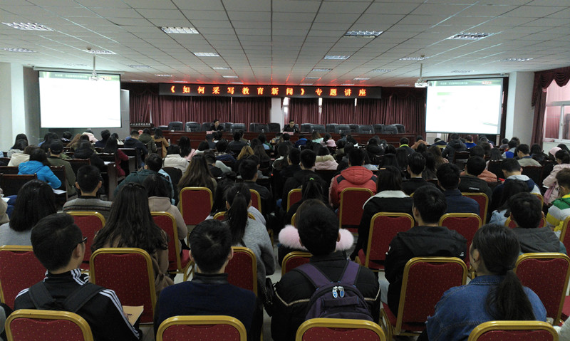 会后,《教育导报》副总编刘磊为师生们作了题为“如何写作教育新闻”的主题讲座。他利用大量的实例从新闻稿类型、写作技巧、稿件刊发三个方面做了深入浅出,精彩生动的讲述,对我校新闻宣传队伍提高理论水平,开阔视野,进一步做好宣传工作,提供了重要的启示和帮助。