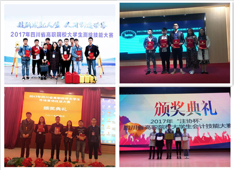 4 月8日 ,我校共派出4支学生队伍分别参加了四川省高职院校技能大赛的4个赛项,荣获2个二等奖3个三等奖的好成绩。