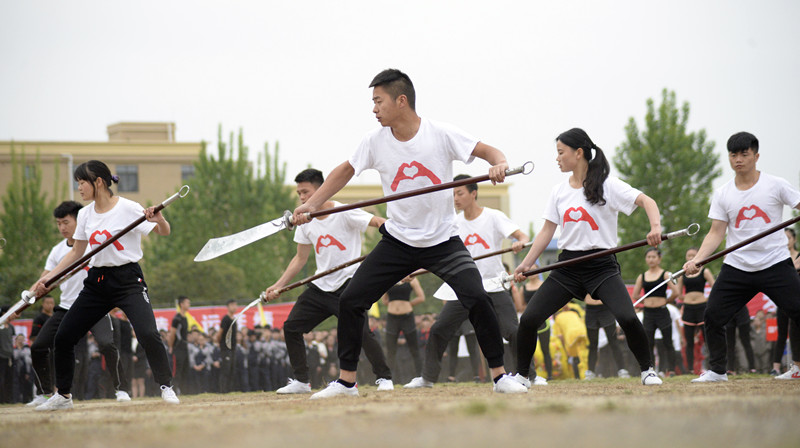 鼓声嘹亮,彩旗飞扬,国防教育素质展示表演开始,由大学生艺术团带来的《威武工科》鼓阵;四川省百佳魅力社团银杉特训队的军体拳表演;学校教官队的反恐防暴手语表演;由体育学院带来的搏击操、棍术表演、长柄大刀、舞狮等民族传统体育表演。宏大的场面,强劲的视觉冲击力,赢得现场观众的阵阵喝彩,充分展示了学校国防教育成果以及全校师生团结一致、积极向上的精神风貌。