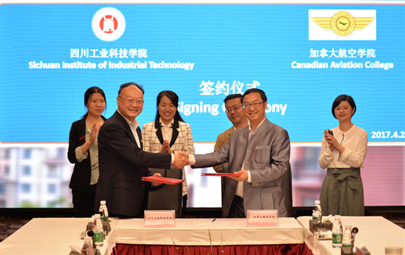 4月28日,学校与加拿大航空学院签订了战略合作协议。加拿大航空学院院长凌海铭(加籍华人),四川时代专修学院院长向元钧,副院长张晨曦,我校党委书记、校长唐健禾以及外事处相关负责人出席签字仪式。