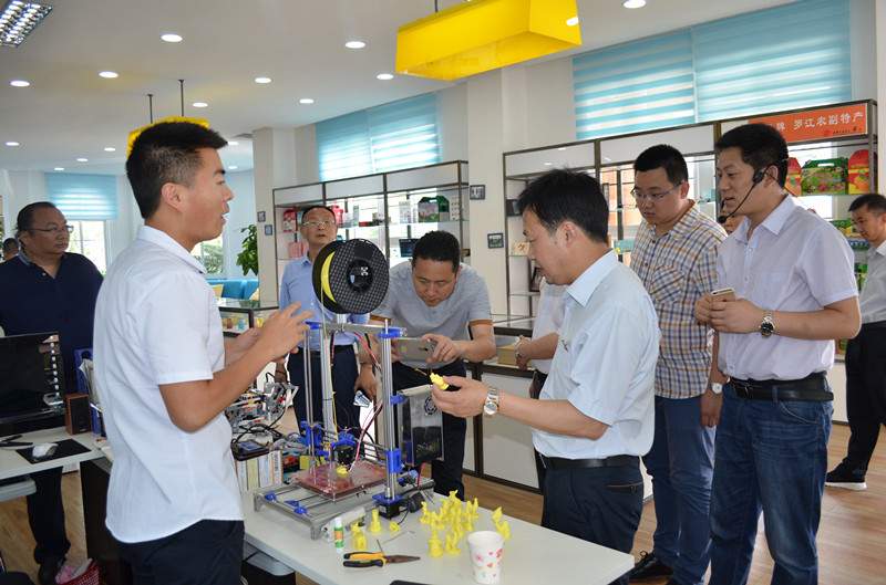 杨雄一行在德阳市政协副主席汪国华、学校党委副书记张进砂的陪同下参观了我校交通学院汽车实训中心、旅游学院航空服务实训中心和大学生创新创业示范街,实地考察了学生实习实训和创新创业情况。