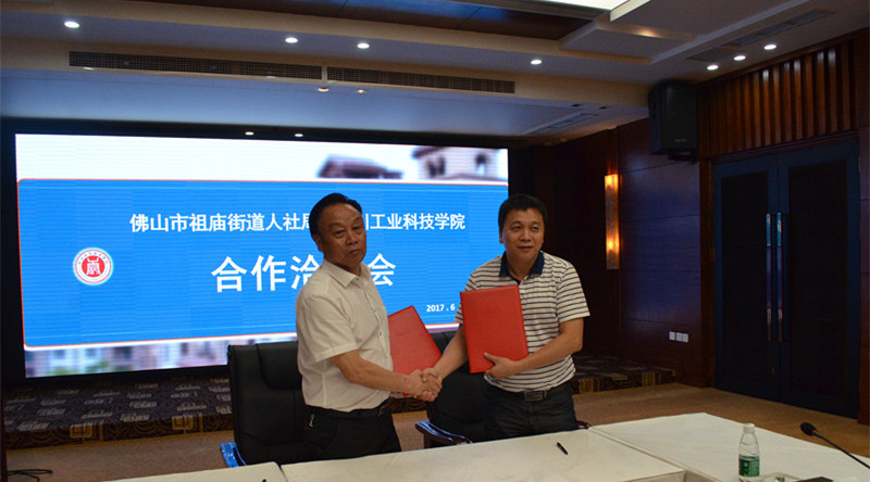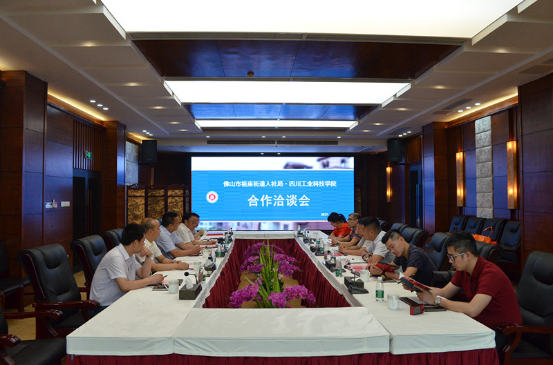 6月7日下午,佛山市祖庙街道人社局常务副局长陈昆明一行到访我校,洽谈关于建立“政校行园企”政产学研合作项目。校领导何义兴、马小红以及校企合作办相关负责人热情接待了陈昆明一行。