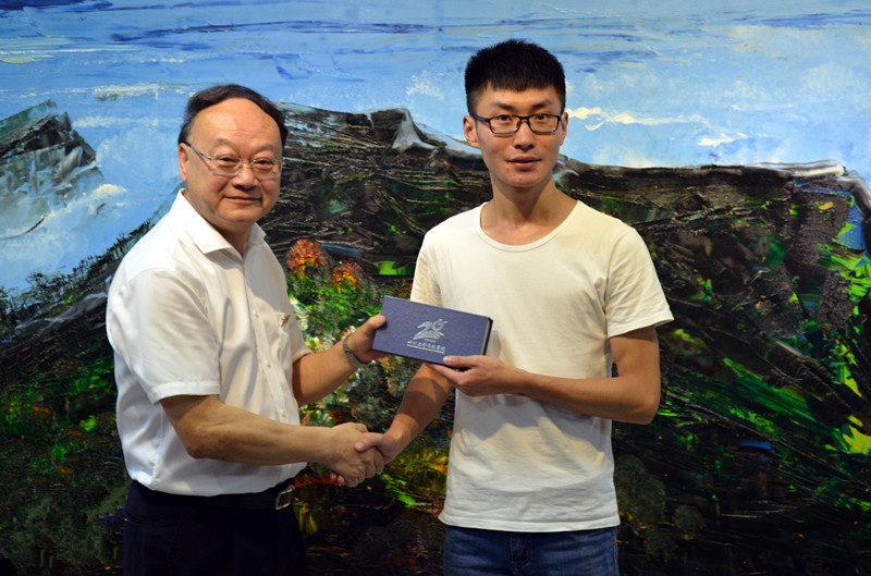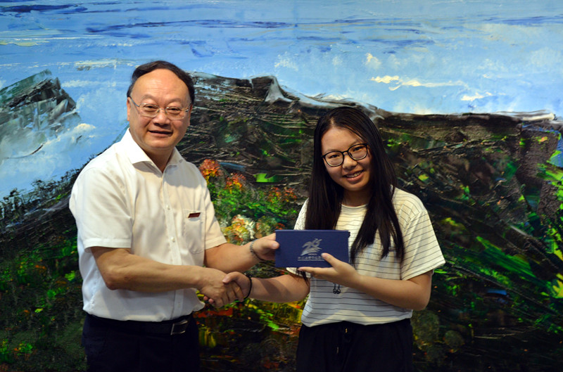 座谈会后,唐健禾与学生代表合影留念,并向大家颁发了纪念品。