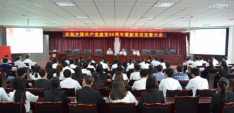 6月15日,在建党96周年来临之际,学校隆重召开庆祝建党96周年暨新党员宣誓大会。党委书记、校长唐健禾,党委副书记张进砂、马小红出席会议。党委各部门负责人、各党支部书记(副书记)、党员和入党积极分子代表以及全体新党员参加了会议。会议由党委副书记张进砂主持。
