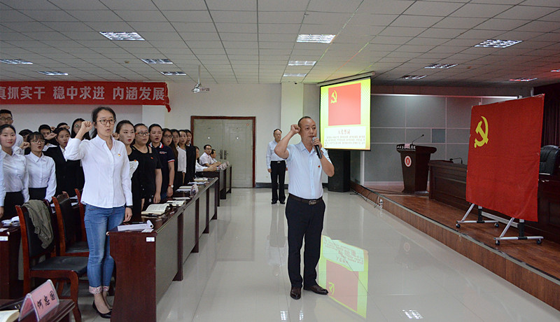 大会在激昂的《国歌》声中拉开了序幕。张进砂首先宣读了新发展党员名单,在党委副书记马小红的带领下,全体新党员面对党旗,举起右拳庄严宣誓,老党员重温入党誓词,表达了为共产主义事业奋斗终身的决心和信念。
