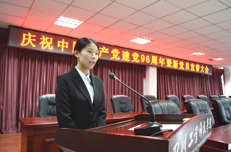 来自交通学院2014级汽车服务工程专业的刘萍萍作为新党员代表发言。