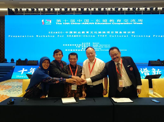 7月30日,在由东南亚教育部长组织(SEAMEO)和中国-东盟中心主办的SEAMEO-中国职业教育文化姊妹项目活动上,国内29所应用型本科、高职院校代表与东南亚8个国家的37所职业院校代表就职业教育合作项目进行了交流洽谈。结合专业特色和国际化需要,综合考虑东南亚国家院校的办学水平和综合实力,我校与部分国家的院校经过反复洽谈,磋商,最终达成合作协议。唐健禾代表学校分别与印度尼西亚SMA N 1 Karanmojo、SMKN 1 Kota Soron、Universitas Ahmad Dahlan三所高校,泰国Maharaj Industrial and Community Education College达成共识,并签署了校际合作备忘录。