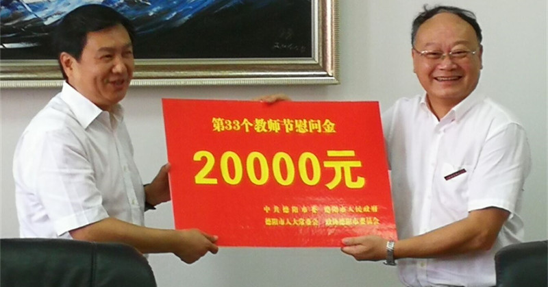 9月6日上午,在第33个教师节来临之际,德阳市人大常委会主任陈彬、副主任李芳芳,市政协副主席汪国华、市人大常委会秘书长王有才等领导在罗江县人大常委会主任白光裕,罗江县政协副主席陈培建,我校党委书记、校长唐健禾以及市、县教育局,学校教务处、人事处等相关部门负责人的陪同下,看望慰问辛勤耕耘在教育一线的教职员工,向他们致以节日的问候并送上节日慰问金。