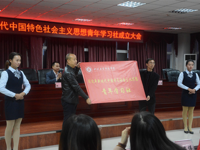 党委副书记马小红宣布四川工业科技学院习近平新时代中国特色社会主义思想青年学习社成立并授旗。会后,思想政治课教学部教师为广大青年师生进行了专题辅导。首场辅导报告以“习近平新时代中国特色社会主义思想和行动纲领”为题,深入浅出、旁征博引地向大家讲述了社会主义的前世今生,以及习近平新时代中国特色社会主义思想的历史贡献与时代价值。