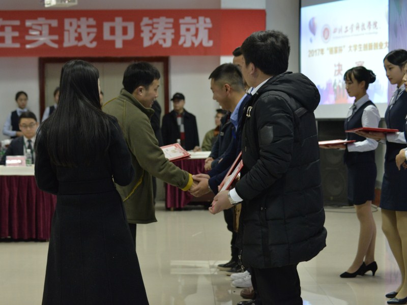 最后,校副校长、创新创业学院院长郭桂萍教授进行了重要讲话,她讲到“学校高度重视创新创业教育,出台了《四川工业科技学院创新创业教育改革实施方案》,把扎实开展创新创业教育工作作为落实立德树人根本任务。学校以组建创新创业学院为平台,构建创新创业教育课程体系为重点,以开展创新创业大赛为抓手,以创新创业项目孵化为载体,培养和引导广大学生创新精神和创业意识。以创新带动创业,以创业带动就业,极大的提高了学生的创新创业能力和人才培养质量。郭桂萍副校长对工科学子创新创业提出殷殷期望:勇做新时代创新创业的追梦人;将创业项目与专业学习、服务区域经济发展紧密嫁接;把青春和智慧汇聚到创造美好未来的不懈奋斗中。师生携手同心,使创新创业大赛的火炬以更耀眼的光辉燃烧在校园的每个角落。