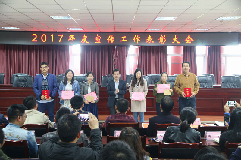 3月30日,学校2017年度宣传工作总结表彰大会在图书馆408会议室举行。学校党委书记魏崛、党委副书记张进砂出席会议,各部门、二级学院负责人,宣传信息联络员以及学生宣传工作者代表参加了会议。