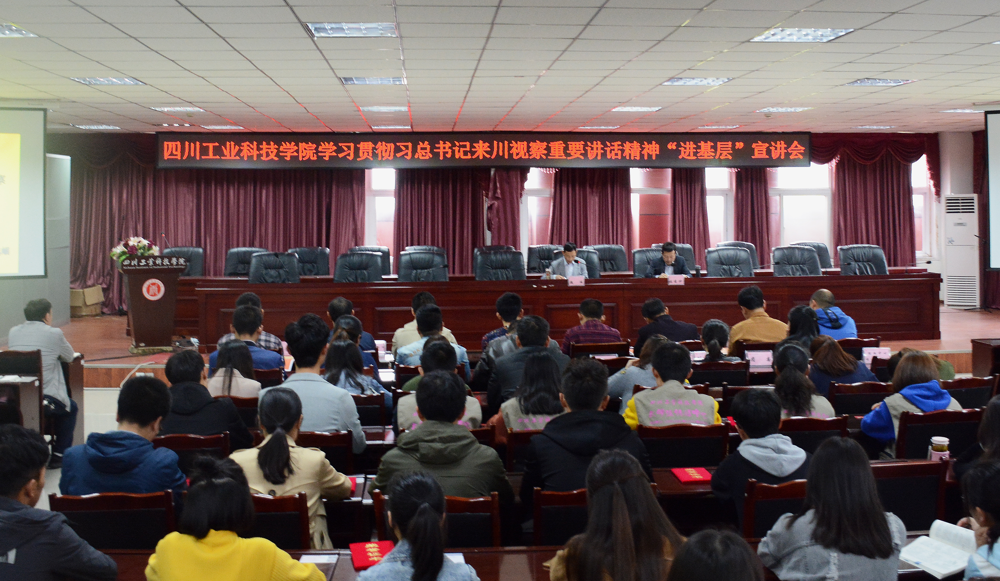 3月30日下午,学校召开了学习贯彻习近平总书记来川视察重要讲话“进基层”专题宣讲会。这是继321日学校党政联席会议学习习近平总书记来川视察重要讲话后,再一次开展专题学习活动。宣讲会由党委书记魏崛担任主讲,各部门及二级学院负责人、部分教师及学生代表共计150余人参加。