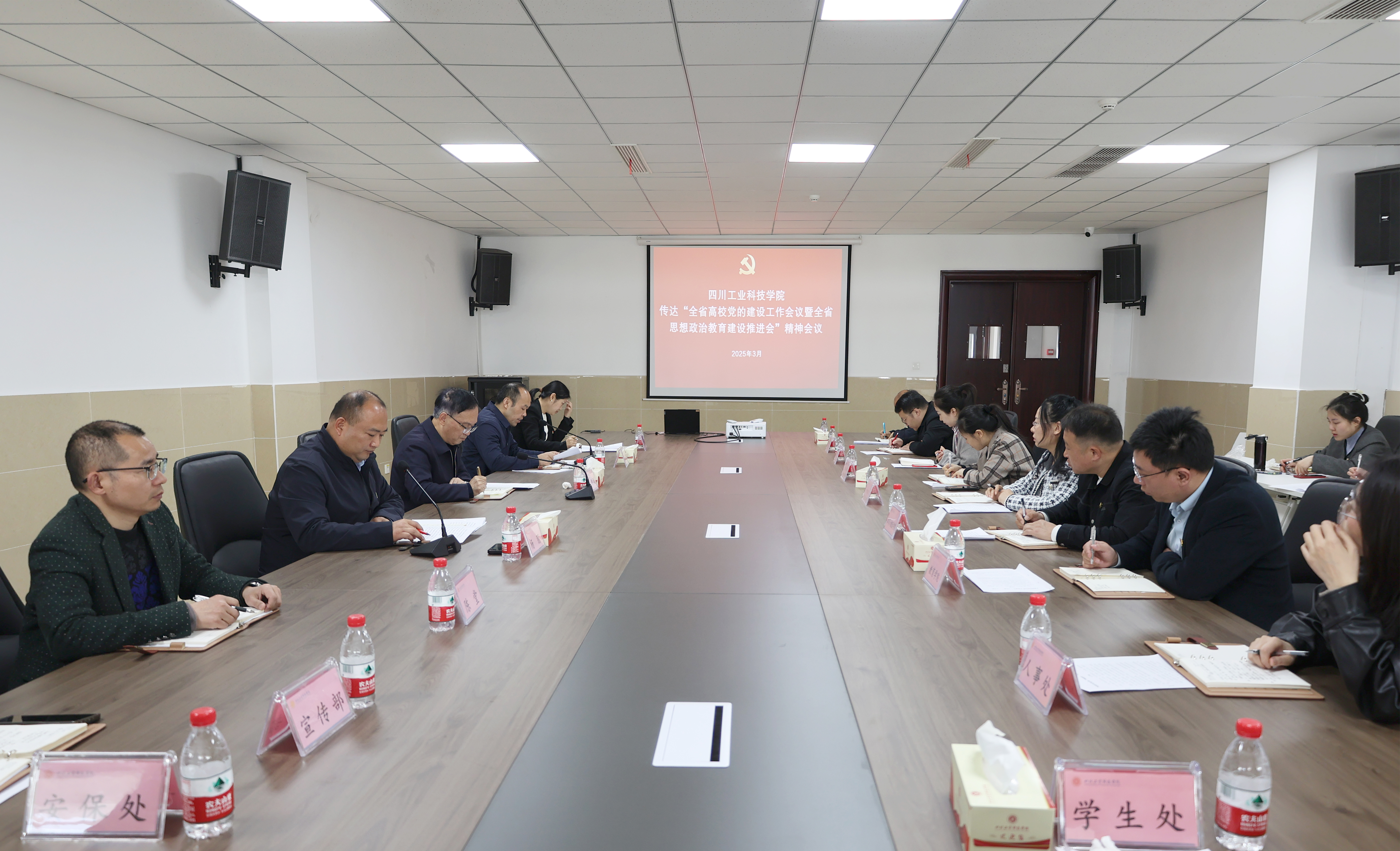 3月25日上午,学校在龑江E516会议室召开了专题会议传达学习全省高校党的建设工作暨全省思政教育建设推进会议精神。学校党委班子成员出席会议,党委及行政部门负责人,各党总支书记(副书记)参加会议。会议由学校党委副书记杨朋主持。