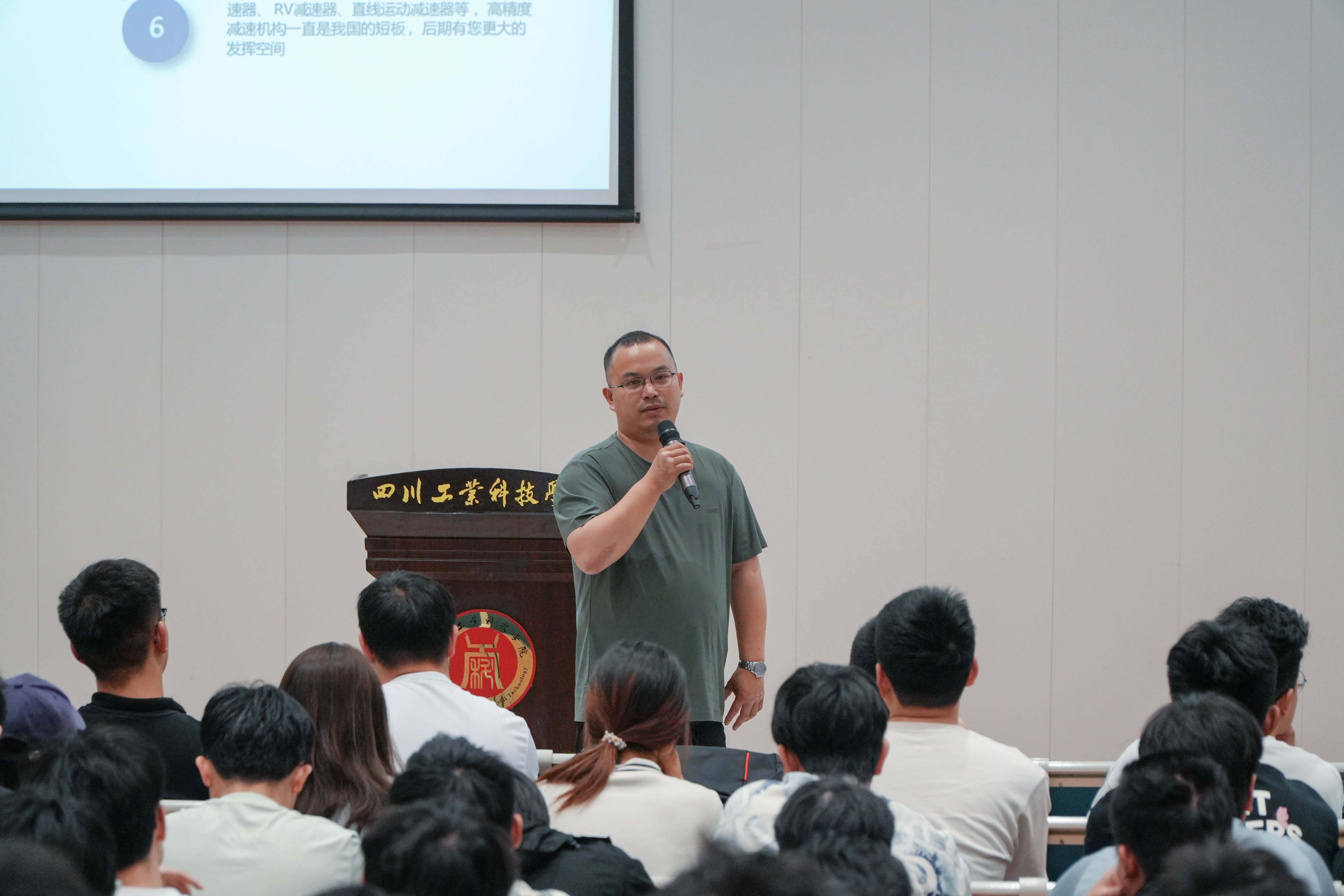企业面向相关专业毕业生组织开展了专场宣讲会,生产负责人顾勇详细讲解了RV减速器的技术优势及市场前景,并介绍了岗位需求及培养计划,吸引智能学院、电信学院百余名学生参与互动,多名学子现场咨询投递简历。