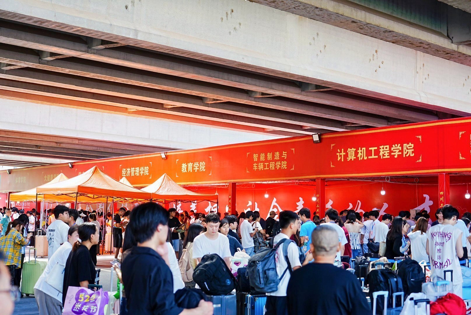 为方便新生顺利来校报到,学校分别在罗江高铁站、罗江汽车站等设置接站处,备好接站物资,安排专人专车将新生及家长“点对点”接至校内。在校内,学校为新生安排了免费摆渡车,迎新期间不间断往返于报到接待处和宿舍区,为新生提供免费接送服务。在迎新报到现场,学校还设立了家长休息区、饮水点、医疗服务点等服务点,并安排专人值班值守,备好急救药品、防暑药品等,为新生和家长提供全方位的服务。