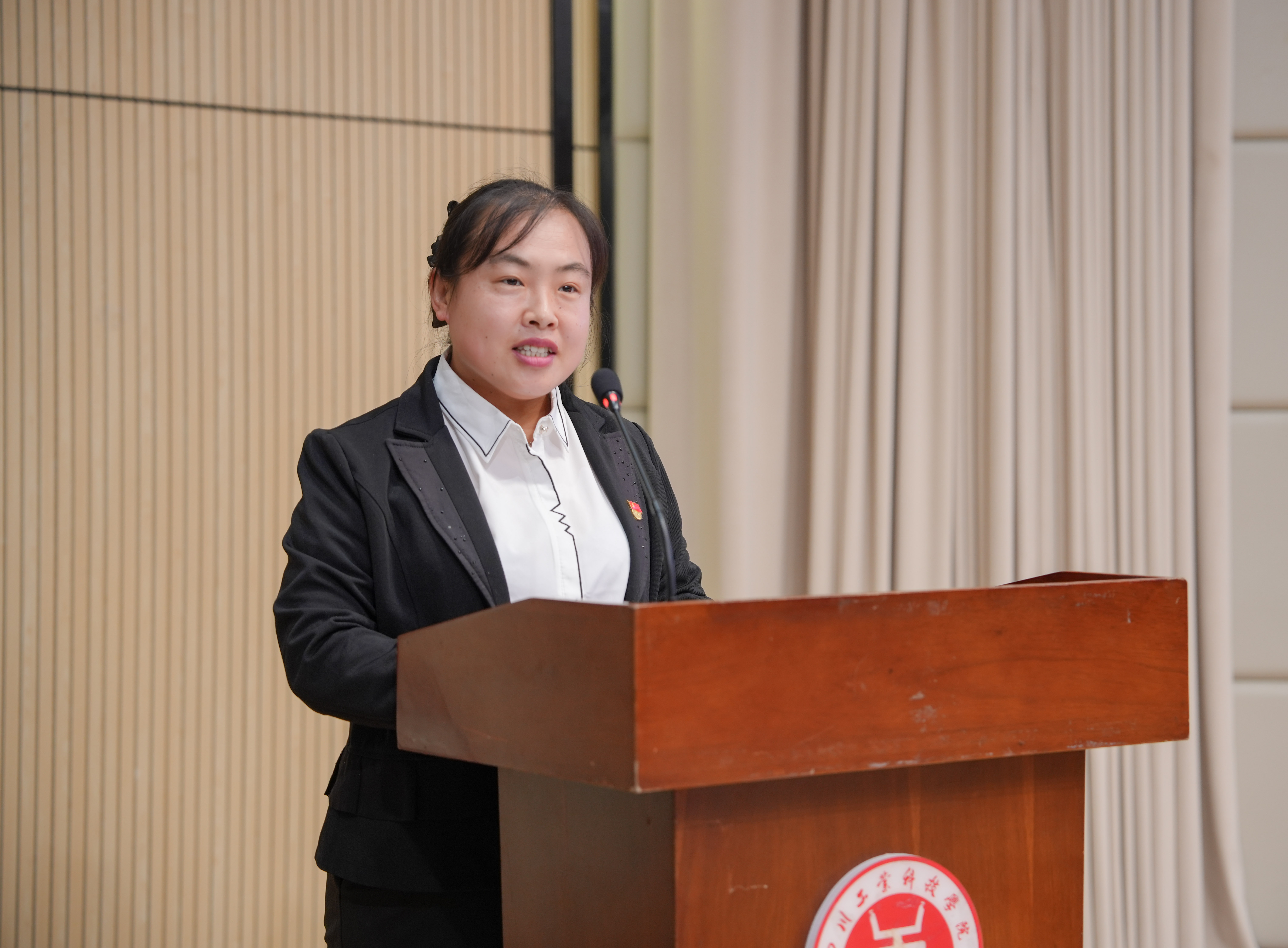 机关党总支组织委员、科技处处长刘翠代表全体授课教师作表态发言。她讲到,全体学员要坚持以学铸魂筑牢理想信念根基、以行践知锤炼坚强党性修养、以责明志展现新时代青年担当,切实做到组织上入党与思想上入党相统一。