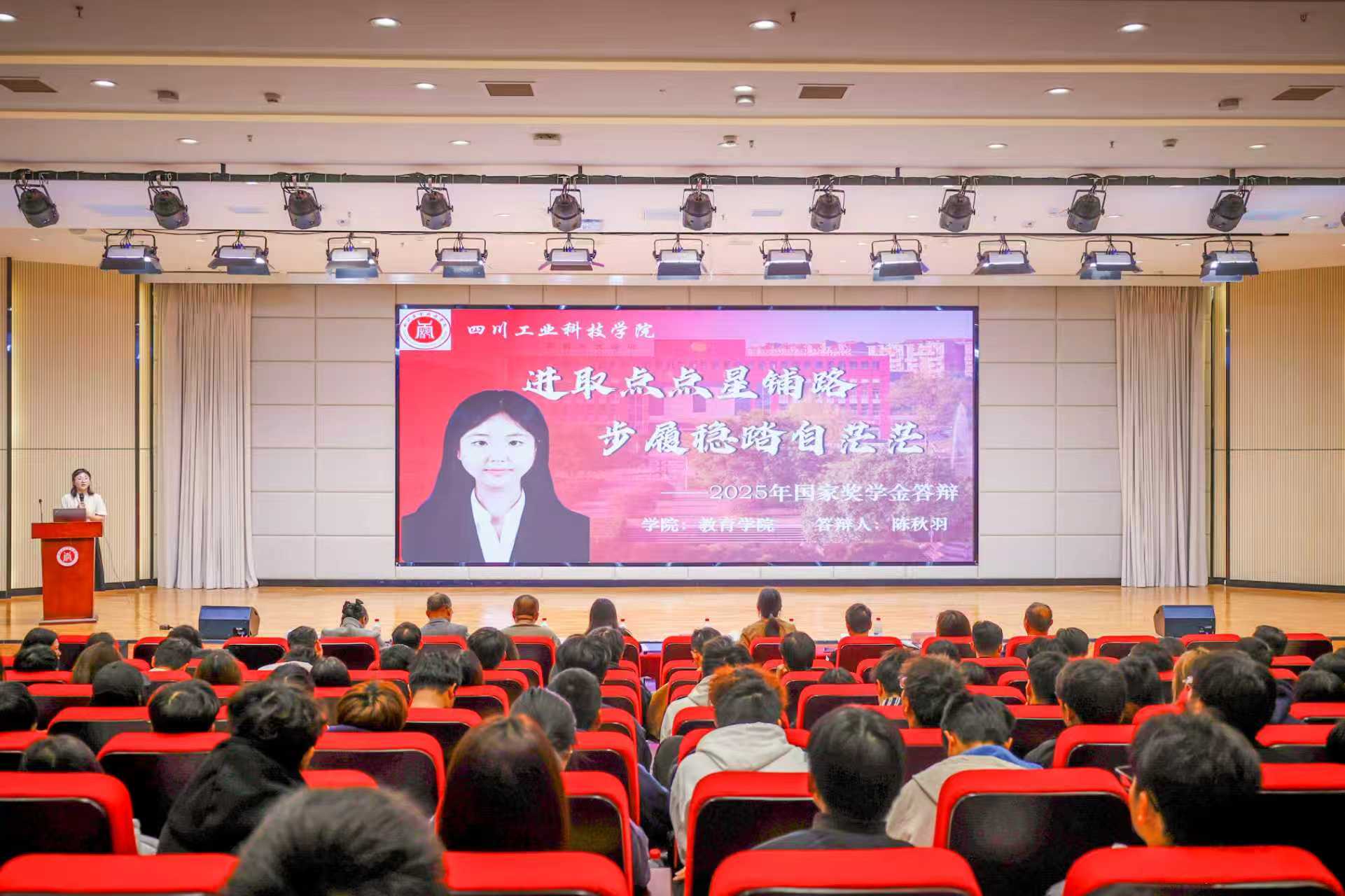 答辩现场,答辩学生借助PPT展示学习成果、科研竞赛、社会实践与志愿服务,充分展现川工科学子昂扬向上、勤学笃行的精神风貌。评审委员会同步对各二级学院报送的国家励志奖学金、国家助学金材料及评审程序、主体资格进行集中审议,确保全过程零异议。
