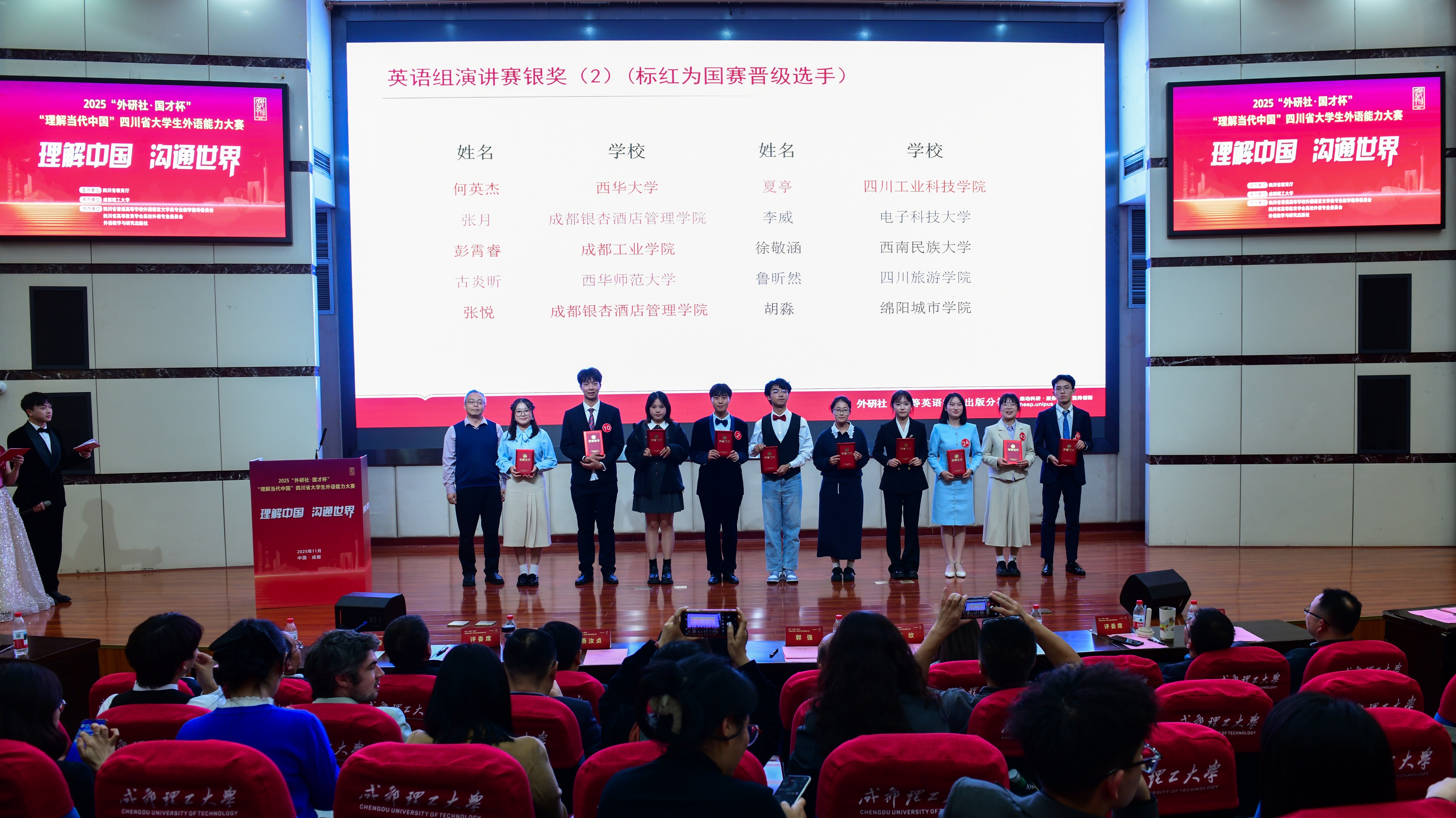 同时,2025“外研社·国才杯”“理解当代中国”四川省大学生外语能力大赛在成都理工大学圆满落幕。学校学子在英语短视频、英语演讲、英语综合能力、英语笔译和日语综合能力五个赛项中表现优异,共斩获金奖一项、银奖一项、铜奖两项,并有两位选手顺利晋级全国决赛,创下学校在该项赛事中的历史最佳成绩。