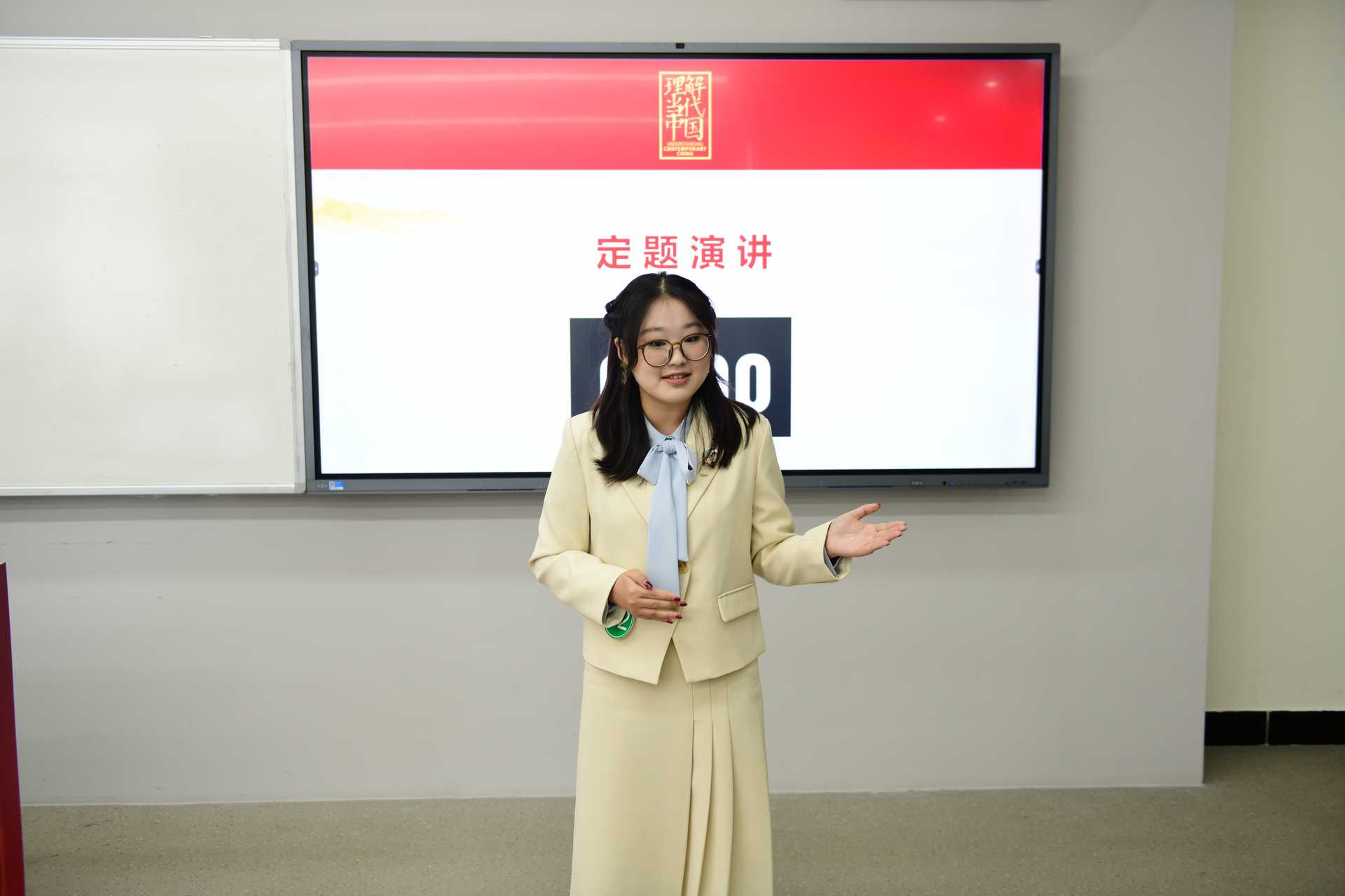 英语演讲赛项中,2023级小学教育专业夏亭同学表现突出。在第一轮定题演讲环节,她以“Strike the Waves”为题获得90.80分的高分;在第二轮即兴演讲中,她凭借丰富的知识储备和出色的临场发挥,最终以89.04分的成绩斩获银奖,并以全省前16名的优异成绩晋级全国决赛。