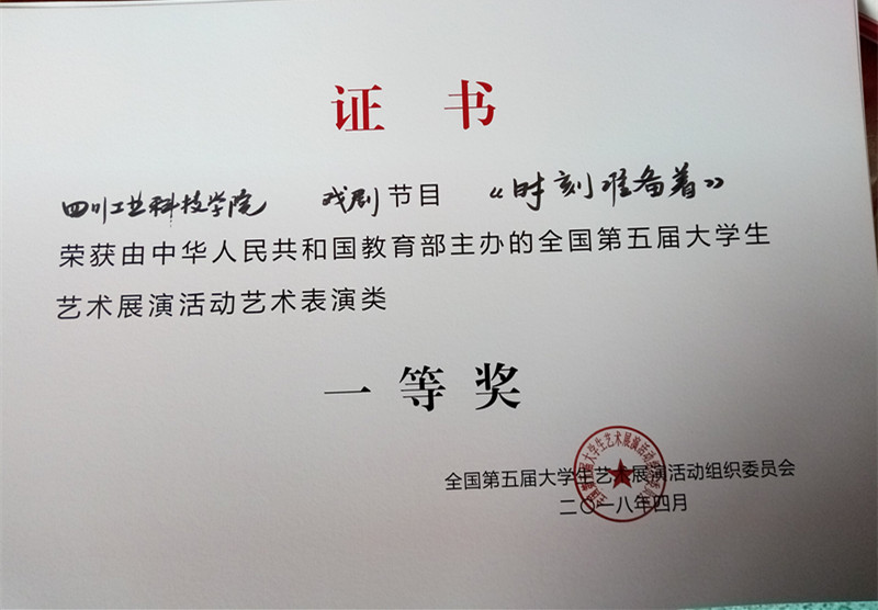 日前,全国第五届大学生艺术展演活动在上海落下帷幕。我校戏剧节目《时刻准备着》在本次活动中获得艺术表演类一等奖。