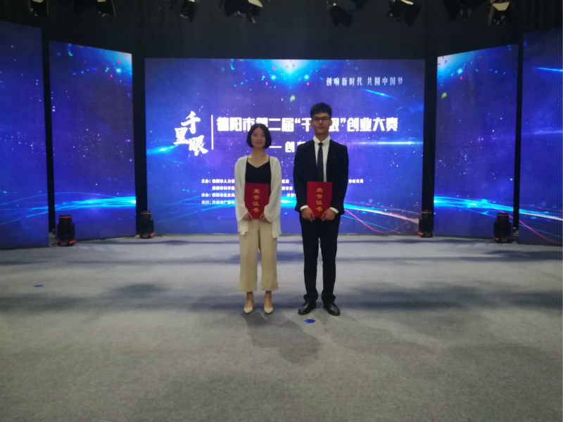 花开半夏,筑梦创业,79日,德阳市第三届“中国创翼”创业创新大赛选拔赛暨第二届“千里眼”创业大赛“创新组”比赛在什邡市人民广播电视台举行。我校创新创业学院王富毅、郑建飞代表罗江区参赛。