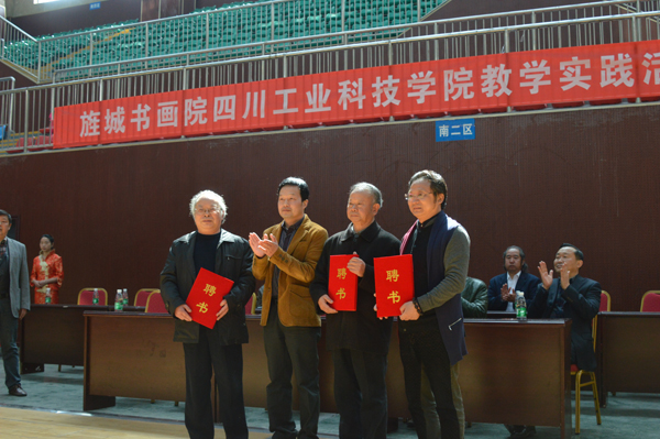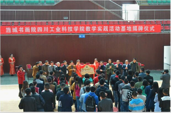 4月8日上午,四川工业科技学院德阳旌城书画院教学实践活动基地揭牌仪式在该校体育馆举行。校党委副书记张进砂、德阳旌城书画院院长、文化馆馆长刘代明等领导以及旌城书画院书画大师高育淮、刘朝晖、王远闻等一批德阳书画界名家出席了揭牌仪式。