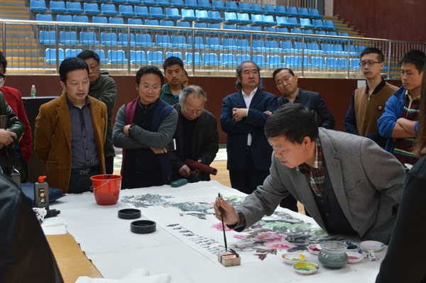 德阳旌城书画院院长、文化馆馆长刘代明表示,希望此项合作不仅成为四川工业科技学院文化创新的重要举措,而且也成为书画院整合社会资源、促进书画艺术走入高校的新路径,成为艺术家们贴近实践、贴近生活、走进校园,开辟了一条新渠道,成为四川工业科技学院广大师生员工,近距离欣赏和学习书画艺术的一个新场所。希望能在多元合作,多方受益的平台上共同耕耘,相得益彰。