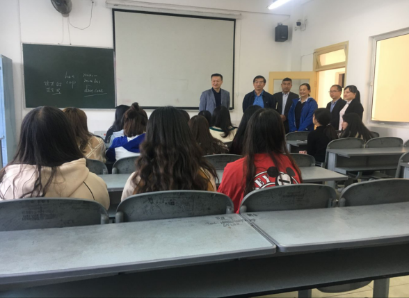 10月31日,校长张小南,党委副书记、纪委书记、工会主席、绵竹校区管委会主任倪霞,校党政办主任张清军以及教育学院副院长吴节义、党支部副书记熊定永、教学办主任徐伟一行深入绵竹校区学生公寓、教室,关心看望教育学院2018级商务英语专业学生。