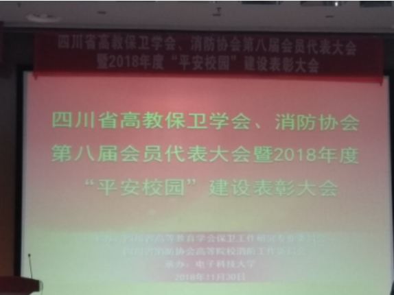 近日,由四川省高教保卫学会、消防协会主办的四川省高等院校2018“平安校园”建设表彰大会在电子科技大学隆重举行,我校安全保卫处杨勇、白鑫鉴参加会议