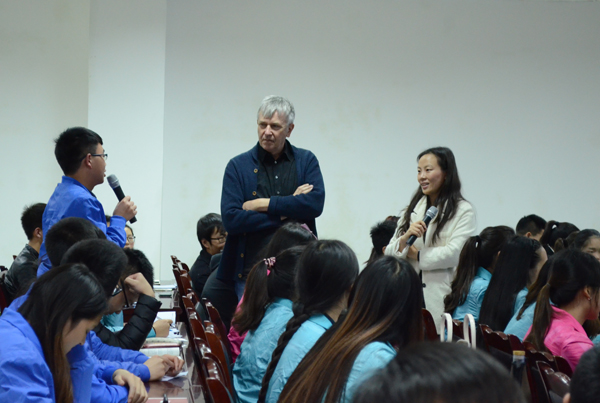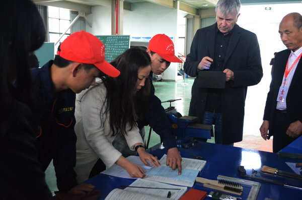 2015年3月19日,德国柏林职业教育集团福格臧主席和闫俊董事长一行来到交通学院对中德合作项目进行实地参观考察。在校长曾令秋、交通学院院长何忠国和副院长徐纯厚等领导的陪同下,德方人员先后考察了我院综合实训区以及大修厂等实训中心,详细询问和了解了我院实训设备、实训教育模式以及专业设置等方面的情况。在汽车综合检测实训中心,德国柏林汽车职业技术专业行会会长彼特·劳(Rau)饶有兴趣,他称赞我院为汽车专业的学生提供了一个良好的实训教学场所。