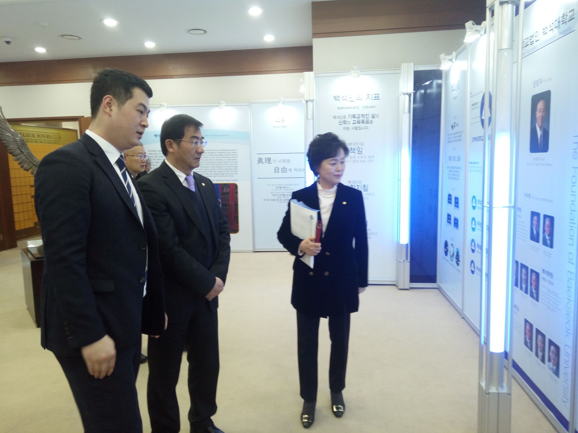 2月26日,我校校长张小南教授一行3人应邀出访韩国白石大学,受到了白石大学的热情接待。