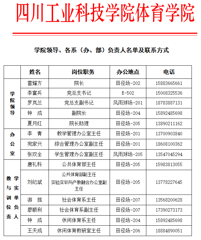 体育学院干部名单