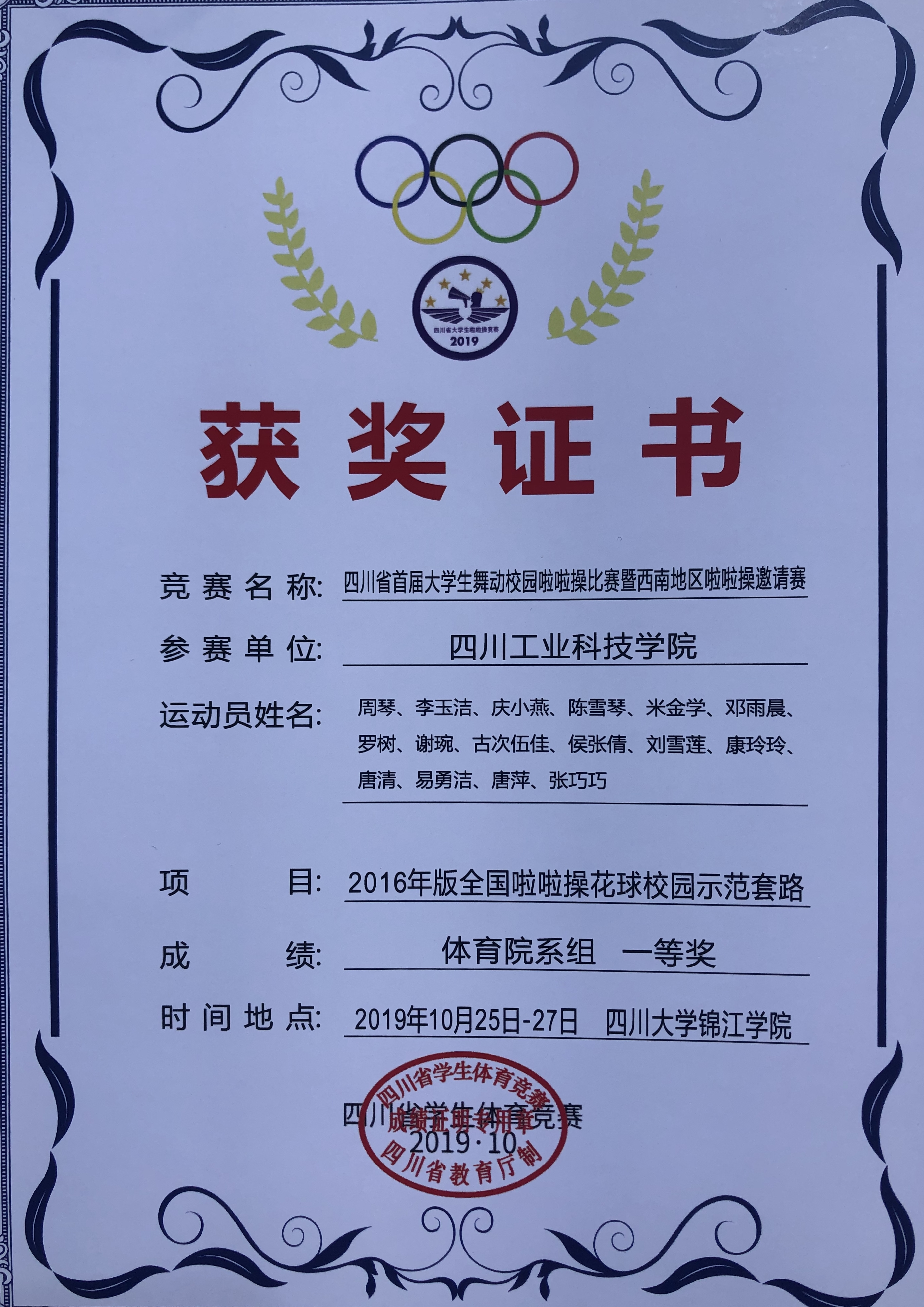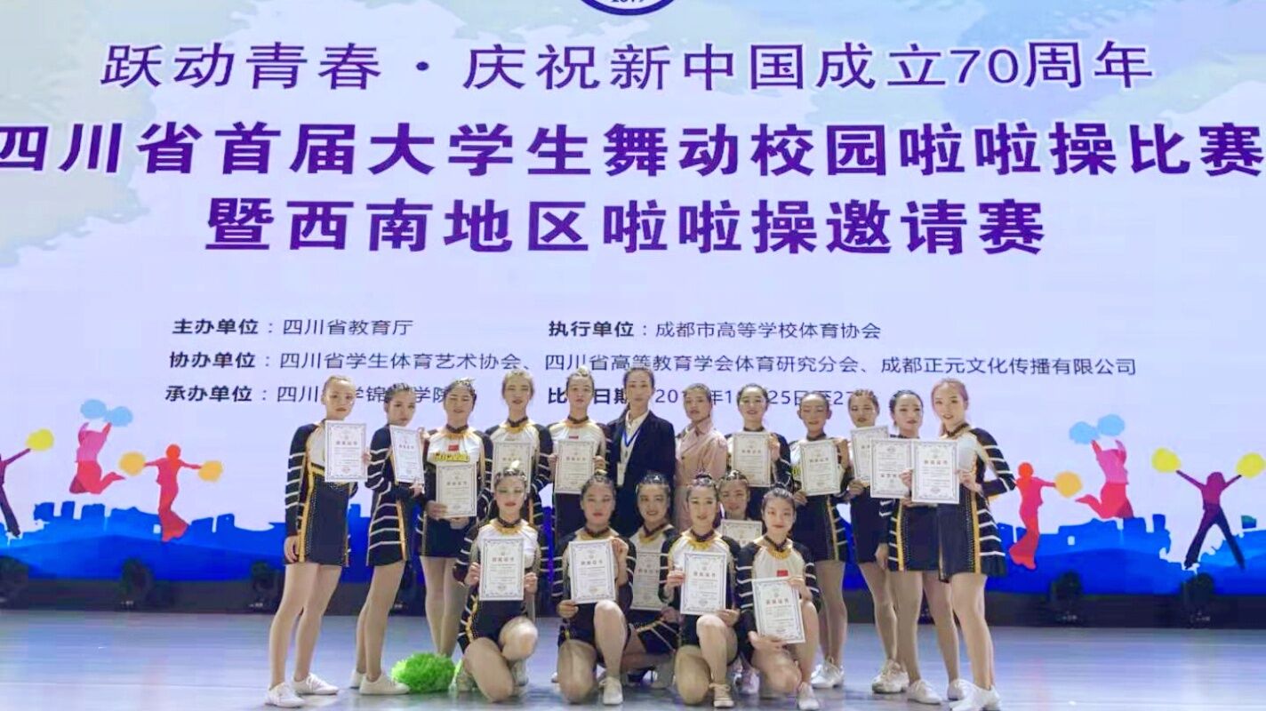 10月25日-27日,由四川省教育厅主办,四川大学锦江学院承办的四川省首届大学生舞动校园啦啦操比赛暨西南地区啦啦操邀请赛在四川大学锦江学院举行,我校2018级本专科专选办首次初战告捷,一举夺得2016版全国啦啦操花球校园示范套路体育院校组“一等奖”。