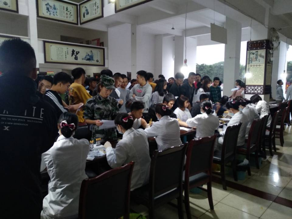 10月11日-12日,为了确保同学们的身体健康,学校针对2019级大一同学开展了新生体检工作。本次体检工作的工作人员主要是由绵竹市新市镇卫生院的医护人员。同学们在各班辅导员的带领下,在教学楼大厅有序地进行体检。本次体检的项目有心电图、验血、血压测量、身高、体重、视力等若干项目。同学们井然有序的进行每项检查,每项检查完成后由该项目医生书写在检查表上。11月12日中午,体育学院全体新生的体检工作顺利结束。