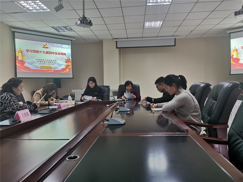 为全面贯彻落实党的十九届四中全会精神,深入扎实地推进“不忘初心、牢记使命”主题教育,11月15日上午,护理学院党支部在图书馆401会议室组织开展党的十九届四中全会精神集中学习会议。护理学院全体师生党员参加了会议,会议由学院党支部副书记李双晶主持。
