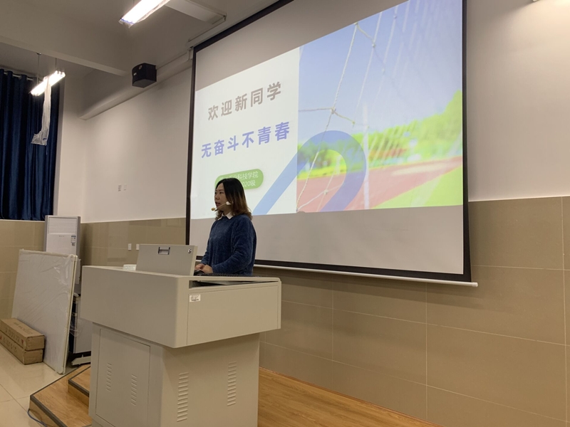 李丹向大家介绍了学院团总支、学生分会的相关情况,着重讲解了学校“第二课堂成绩单”制度。她希望在场所有20级新生在学好专业知识的同时,能够积极参加学生社团活动,以此来充实自己的大学生活、提高自己的综合素养,丰富自己的人生学历,开心学习、快乐生活。