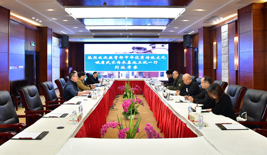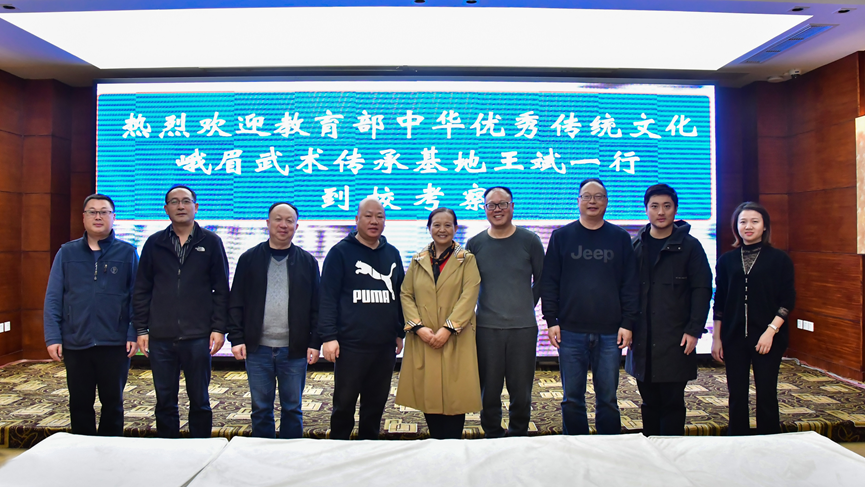 2020年10月22日教育部中华优秀文化峨眉武术传承基地王斌一行6人来到我校考察交流武术项目发展情况。体育学院院长邓跃宁教授及体育学院党政班子成员陪同考察交流武术发展情况学校党委副书记、纪委书记倪霞教授出席交流活动。交流活动由体育学院执行院长雷耀方主持,学校党委副书记、纪委书记倪霞教授代表学校对教育部中华优秀文化峨眉武术传承基地王斌一行来我校考察交流表示欢迎,并介绍了我校的办学情况;邓跃宁院长向王斌一行介绍了体育学院的发展情况和 “涉武类”“健身类”专业办学特色;王斌主任向我们介绍了教育部中华优秀文化峨眉武术传承基地的基本运行情况,并对我校体育学院生源规模、专业设置和“涉武类”“健身类”专业办学特色给予了充分肯定。王斌一行在体育学院党政陪同下还参观了绵竹校区体育学院的办学设施条件。通过交流活动教育部中华优秀文化峨眉武术传承基地与我校体育学院达成了战略合作意向,后期准备我校在战略推广合作、师资培养、项目共享、科学研究领域展开合作。此次战略合作意向的确定,将会对体育学院“涉武类”“健身类”专业办学特色起到极大的促进作用。