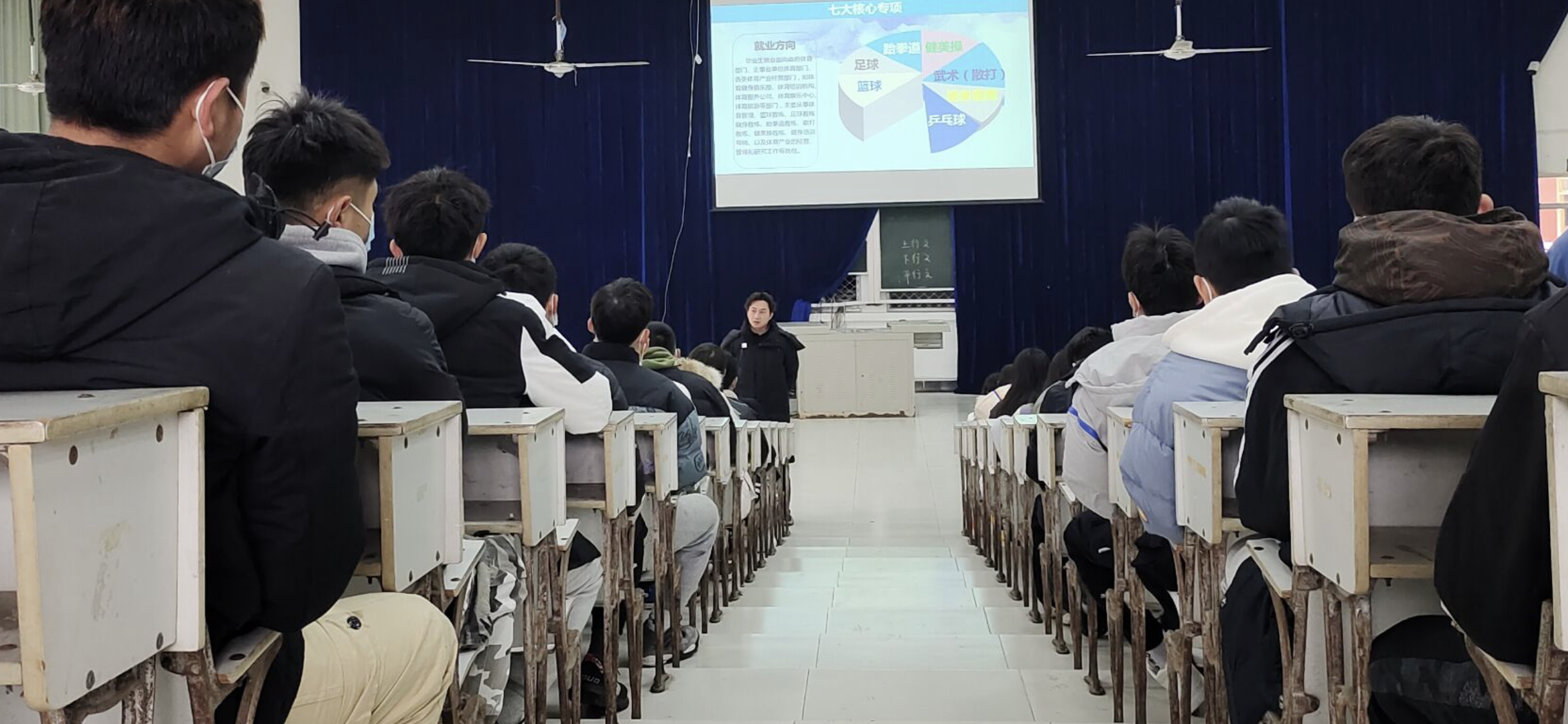 首先,游拢老师强调专选是同学们职业发展的重要渠道,关乎未来几年的学习,关乎毕业后的就业,叮嘱学生们应根据自身兴趣爱好和职业发展认真负责地做出选择。他从社会体育的专业背景、专业内容、课程设置、实训实践、专项开设和毕业生就业情况等做了详细的介绍,为新生们揭开了专业的神秘面纱。