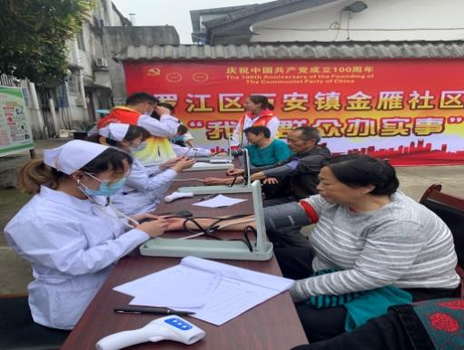 为进一步提高居民健康生活品质,提升居民关爱健康的意识,同时培养学生志愿服务精神。2021年4月22日下午14:00,我院党总支、团总支走进金雁社区开展“献礼建党100周年、弘扬志愿者服务精神”义诊活动。