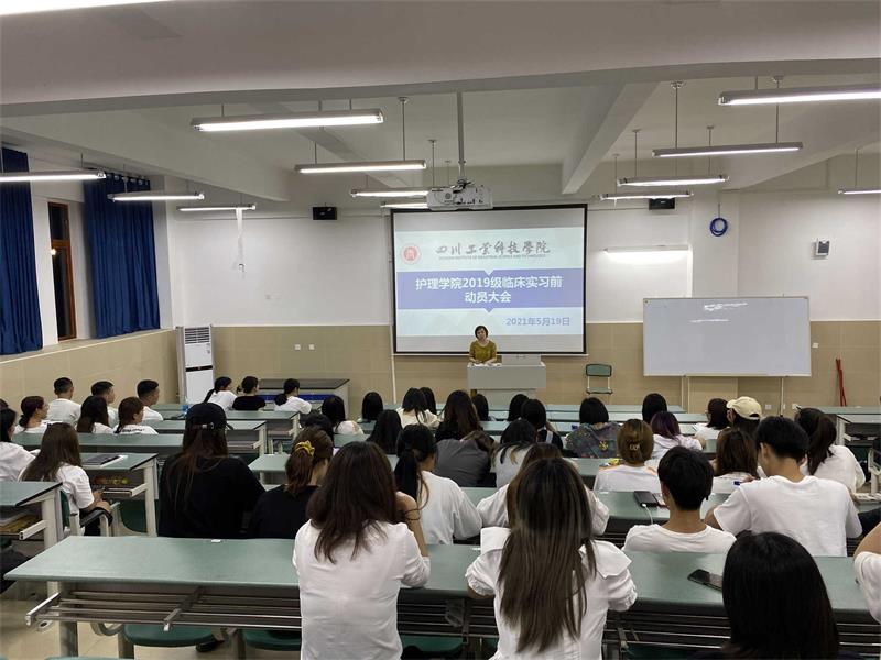 5月18-19日晚上7-9点钟,护理学院在东区8号教学楼召开了2021年学生临床实习动员大会。会议分校联和自联两个层面,四个批次进行,护理学院党总支副书记李双晶、副院长刘琼碧、教学办副主任杨橙、分管实习的罗宏老师和全体辅导员以及2019级全体同学,共计500余人参加了此次大会。