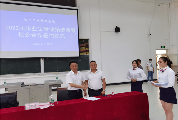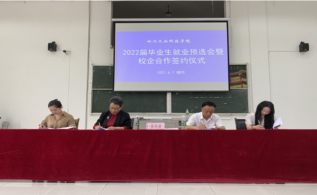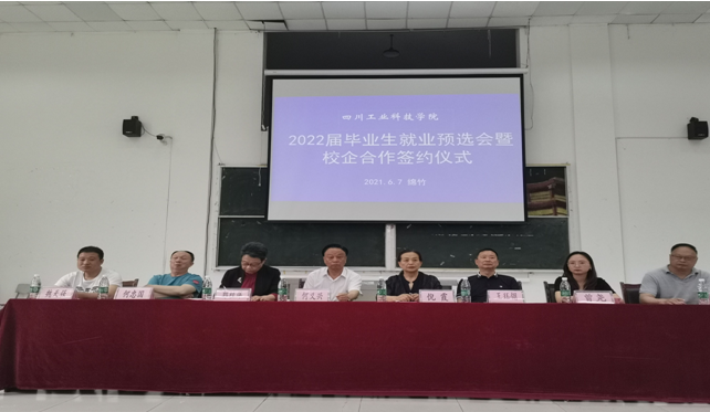 2021年6月7日上午10:00体育学院2021年校企合作签约仪式暨2022届毕业生就业预选会在绵竹校区召开。学校副校长何义兴,党委副书记、纪委书记倪霞,副校长郭桂萍、王珏翎,体育学院党政,33家企业代表共同全体参加了此次活动。