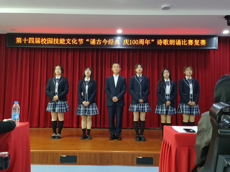 比赛现场,选手们以其铿锵有力的气势,充沛饱满的感情,自信大方的形象朗诵了《火红的七月》、《祖国颂》、《党的赞歌》等经典诗词,赢得了老师和同学们的阵阵掌声。经过一个多小时的精彩诵读,最终有12支队伍脱颖而出,进入决赛环节。